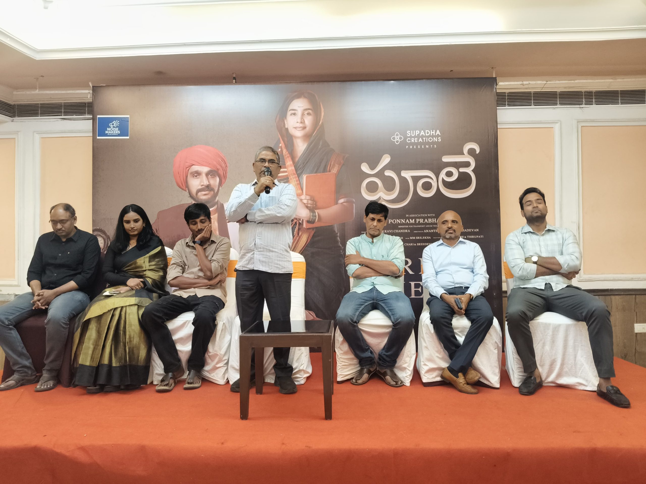 పూలే సినిమాను ప్రివ్యూ షో చూసి సినిమా టీమ్ ని అభినందించిన తెలంగాణ రాష్ట్ర ముఖ్యమంత్రి రేవంత్ రెడ్డి, ఉప ముఖ్యమంత్రి భట్టి విక్రమార్క , పొన్నం ప్రభాకర్, మంత్రివర్గ సభ్యులు శాసనమండలి సభ్యులు శాసనసభ్యులు, దిల్ రాజు లకు హృదయపూర్వక కృతజ్ఞతలు తెలియజేస్తున్నట్లు పొన్నం రవిచంద్ర, కత్తి చేతన్ సివి నవీన్ కుమార్, రాజీవ్ చంద్ర పొన్నంలు తెలిపారు. ఈ సినిమాకు వినోదపు పన్ను మినహాయింపు ఇవ్వాలని రాష్ట్ర ప్రభుత్వాన్ని కోరారు. ఈ సినిమా భారతీయ సమాజానికి అద్భుతమైన సందేశాన్ని ఇస్తుందని మహిళా అభ్యున్నతికి ఆనాడు ఉన్న కుల వివక్షకు వ్యతిరేకంగా సర్వ సమానత్వ భావన కోసం జరిపిన త్యాగాలను ఈ తరానికి గుర్తు చేస్తుందని వారు అన్నారు. తెలుగు సమాజంలో బహుజన రాజకీయ అధికారానికి బాటలు వేస్తుందన్నారు. ఈ సినిమా సెన్సార్ బోర్డ్ పరిశీలన తర్వాత జనవరి చివరి వారంలో అన్ని థియేటర్లలో రిలీజ్ చేస్తామన్నారు. మనం ఇప్పుడు ఈ ఆధునిక ప్రజాస్వామిక సమాజంలో ఉన్నామంటే పూలే అంబేద్కర్ లాంటి దార్షానిక విప్లవకారులే కారణమన్నారు. ఈ సమావేశంలో తిరుపతి గౌని, ఉదయ్ కుంభం, జనని, నేతికార్ సురేష్ లాల్, అభినవ్ వరాల, నీలం రమేష్, బత్తిని వినయ్ గౌడ్, బత్తుల గణేష్ పాల్గొన్నారు.